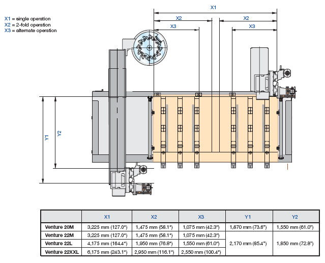 - агрегатные стойки рассчитаны на 2 отдельных Z-оси (Z1, Z2). Для быстрого попеременного применения сверлильной головки и главного шпинделя.
